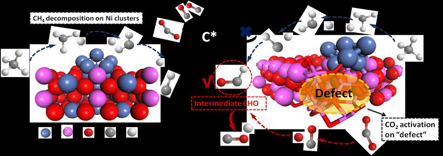 传统Ni/Al2O3催化剂中Ni与γ-Al2O3之间存在着强烈的金属载体相互作用,从而限制了Ni在催化剂中的利用率,阻碍了其工业化应用。此外,利用催化剂表面缺陷位点活化CH4和CO2等温室气体在多相催化研究中引起了广泛关注。因此,设计更好的Ni/Al2O3体系,在产生表面缺陷的同时又不将活性Ni流失到Al2O3载体中仍然是一个挑战。