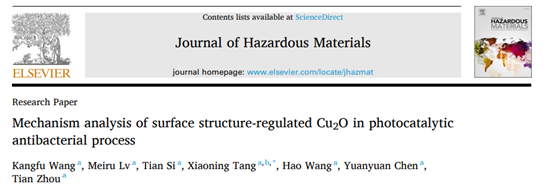 先进功能材料研发与应用团队在无机光催化功能材料的可见光响应抗菌机制研究方面取得系列重要进展,相关研究成果以“Mechanism analysis of surface structure-regulated Cu2O in photocatalytic antibacterial process”和“Principle of CoS2/ZnIn2S4 heterostructure effect and its mechanism of action in a visible light-catalyzed antibacterial process”为题,分别发表在SCI一区TOP期刊《Journal of Hazardous Materials》和《Journal of Colloid and Interface Science》上。论文的第一作者分别为我院2021级硕士研究生王康富、吕美儒,通讯作者均为唐晓宁教授,通讯单位为色漫