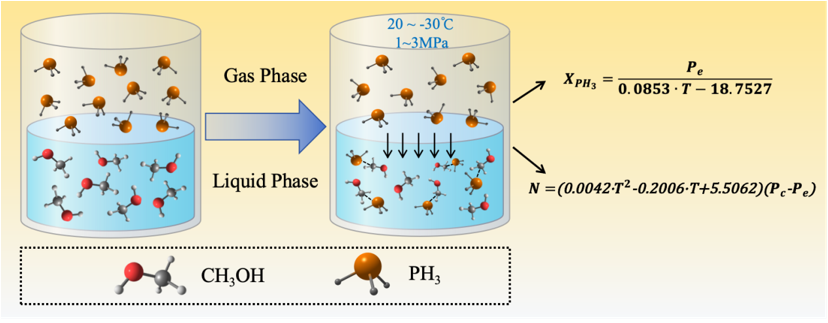 磷化氢是一种无色、剧毒气体,广泛产生于稻田耕作、垃圾填埋、废水处理、工业生产等过程,其排放会造成严重的环境污染;此外,对于黄磷行业,磷化氢的净化直接制约了黄磷尾气的资源化利用,开发低成本的脱磷技术具有重要的社会和环境意义。鉴于此,本团队开发了甲醇吸收剂低温、高压净化磷化氢的方法,旨在实现污染物净化和磷资源回收的双重目的。论文重点研究了温度和总气压对磷化氢的溶解度和吸收速率的影响,建立了溶解度方程和动力学方程。基于FT-IR、31P NMR和气相色谱的表征,确定了甲醇吸收磷化氢是一个物理吸收过程。此外,经过6次再生循环后,甲醇的吸收能力仅下降了4.27%。甲醇在吸收磷化氢过程中的焓变相对较小,再生性能优越,表明甲醇是一种节能且可再生的磷化氢吸收剂。研究结果对于低温甲醇洗脱磷工艺设计具有重要的指导意义。