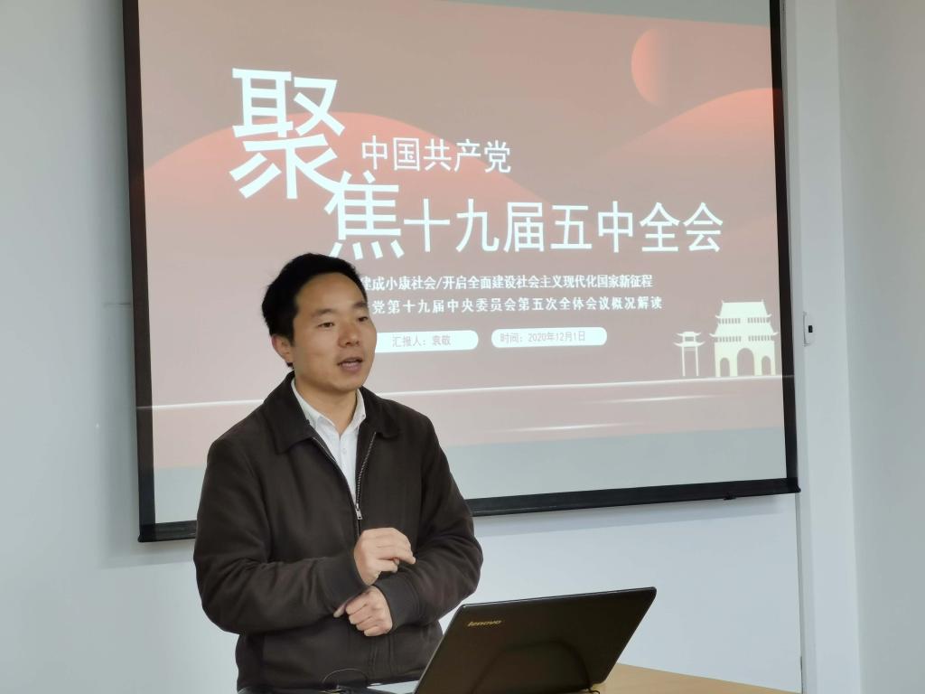 袁敬老师从党的十九届五中全会概况、“十三五”经济社会发展成就回顾、“十四五”时期经济社会发展的主要目标、实现奋斗目标的具体举措等方面,深入浅出地为同学们解读了党的十九届五中全会精神。