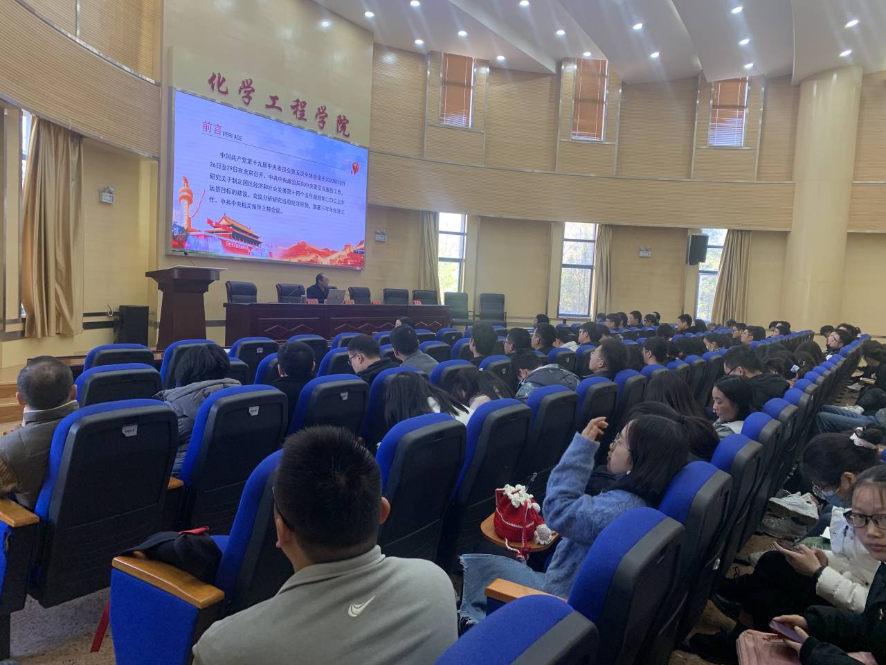 2020年12月24日,色漫 在化工楼100报告厅组织开展了“学习贯彻党的十九届五中全会精神”专题党课,本次党课由学院党委书记齐毅主讲,化工学生第二党支部全体党员参加了会议。