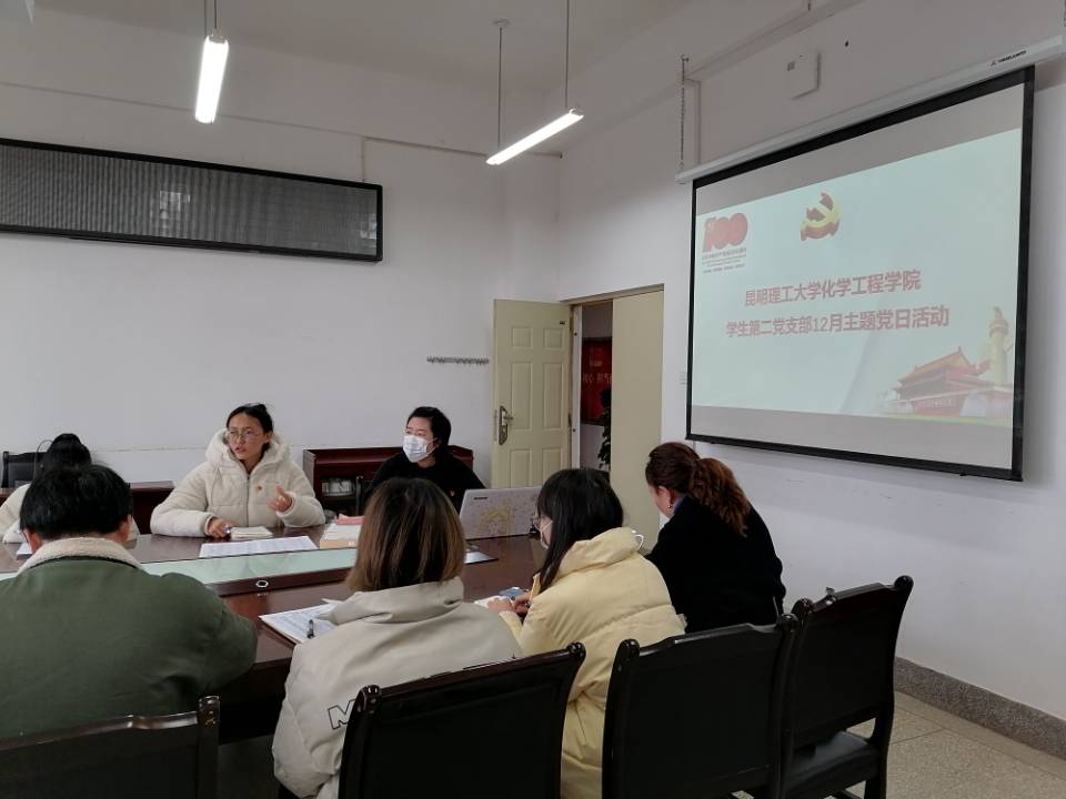 活动开始,由学院党委副书记宁玲同志对“十九届六中全会”的内容进行领学,她指出这次会议是在党成立100周年的重要时刻,在“两个一百年”奋斗目标历史交汇点上召开的一次具有里程碑意义的重要会议,从党的百年奋斗中汲取奋进力量,更加紧密团结在以习近平同志为核心的党中央周围,全面贯彻习近平新时代中国特色社会主义思想,不忘初心、牢记使命,以更加昂扬的姿态迈进新征程,为实现第二个百年奋斗目标贡献青春力量。接着,宁玲同志带领大家学习了“省十一次党代会”精神,强调本次会议高举中国特色社会主义伟大旗帜,以习近平新时代中国特色社会主义思想为指导,深入贯彻学习习近平总书记考察云南重要讲话和重要指示批示精神,总结了云南省近五年来取得的成就,也明确了今后五年工作的总体思路。接下来,支部党员梁俊、封丽、黄楚珺、寇馨文等同志依次做学习交流分享。