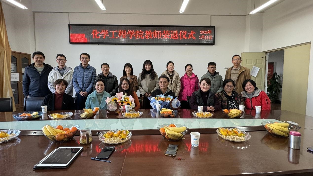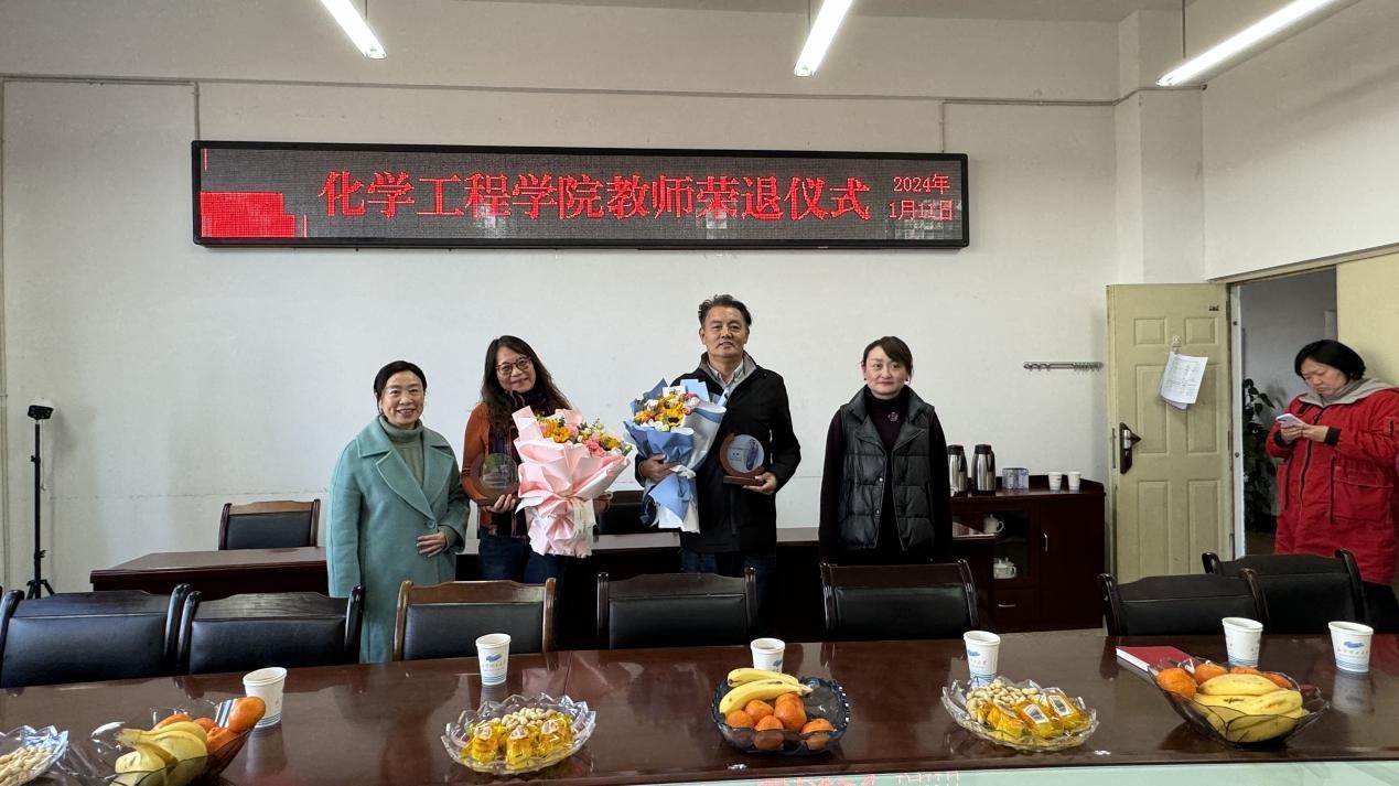 为感谢退休教师多年来的辛勤付出,增强退休的荣誉感、仪式感和归属感,2024年1月11日下午,我院为顾丽莉和唐辉两位老师举办了荣退仪式。院党委书记李云燕、副书记宁玲、各科室代表、化工系教师代表参加了本次活动,荣退仪式由工会主席常静华主持。