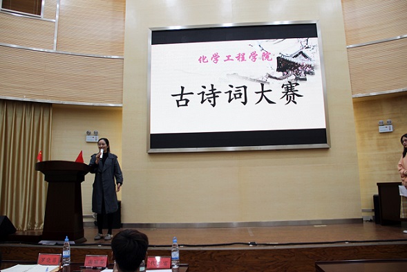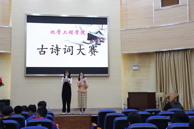 2019年11月1日晚19:00,色漫 于化工楼100报告厅举行了“古诗词大赛”。团委谢丽芬老师、罗晓菲老师、学工办代广富老师出席了此次活动,2019级同学积极参加。文艺部的徐茹雅和杨娴同学担任本次主持人。