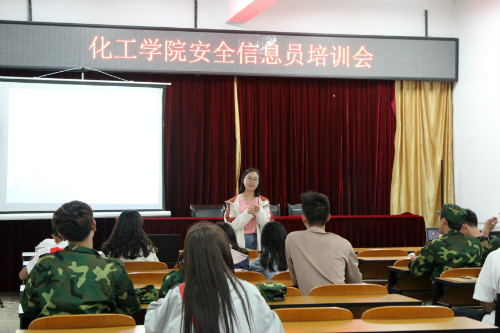 2019年9月1日19:00,色漫 于化工楼负一楼报告厅召开了安全信息员培训会。学工办罗晓菲老师、学生党员服务队部分成员、17、18、19级全体安全信息员参加了此次会议。