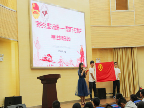 2019年9月27日20:00,色漫 “我与祖国共奋进——国旗下的演讲”特别主题团日活动在化工楼100报告厅举行。出席本次活动的有色漫 团委谢丽芬老师,2019级团员青年参加。