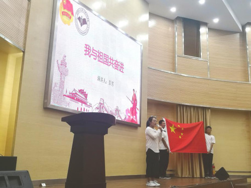 活动开始,主持人介绍了此次“我与祖国共奋进——国旗下的演讲”特别主题团日活动的背景。全体成员同唱国歌,其次三名学生代表以“我与祖国共奋进”为主题,结合个人学习经历面向参加仪式的全体成员进行了国旗下的演讲。