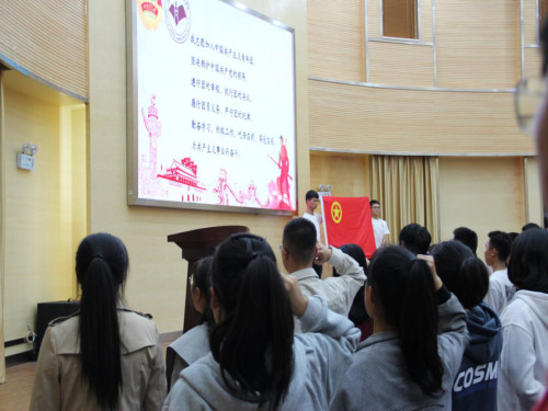 接着谢丽芬老师,围绕活动主题集中为团员青年讲授一堂微团课,以亲身经历讲述中华人民共和国成立70周年来特别是党的十八大以来发生的巨大变化。紧接着,共青团员在装控191班牛冉同学的带领下重温入团誓词。最后由主持人组织团员青年们齐唱团歌。
