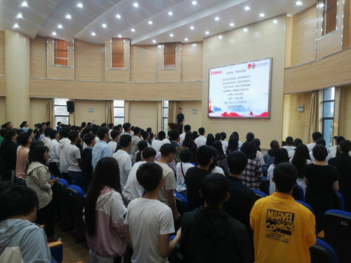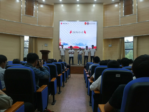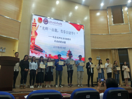 2019年4月28日晚19:00,色漫 团委、学生会联合院青年志愿者协会在化工楼100报告厅举办了“光辉一百载,青春自韶华”五四青春献歌祖国活动,本次大会有学工办主任袁敬老师、团委李凯宇老师、谭宏雪老师、17级辅导员杨欢老师、18级辅导员罗晓菲老师和现场一百多位观众同学参加,并由院团委、学生会文艺部部委林雨主持。