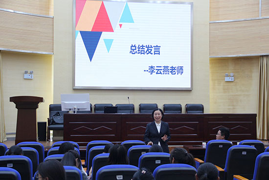 最后是党委副书记李云燕老师进行总结讲话,讲话提及了17级化工专业的同学如何分专业,并郑重强调了选择专业的重要性。