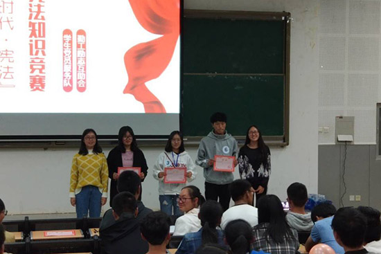 2018年10月21日晚上19:00,化工学院勤助会联合党员服务队在中心区教学楼100报告厅成功举办了"时代•宪法"的知识竞赛活动。18级辅导员罗晓菲老师、勤助会指导老师杨欢老师出席了本次活动;党员服务队成员和勤助会成员共同参与活动。本次活动由勤助会程晓东、段雯碟主持。