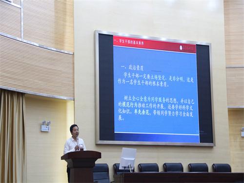 本次活动由袁敬老师主讲,首先,袁敬老师对学生干部的定义和责任作出解释,学生干部的主要任务就是服务同学,作为学生干部,应该不断提高自身政治素质,培养良好的道德素质、过硬的心理素质和强健的身体素质。同时,袁敬老师还对学生干部提出了明确的要求,希望同学们能深刻认识到学习专业知识的重要性,提高学习效率,合理管理时间,用同样的心态对待学习和工作。