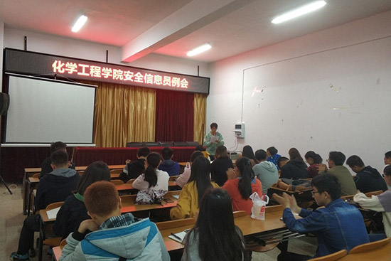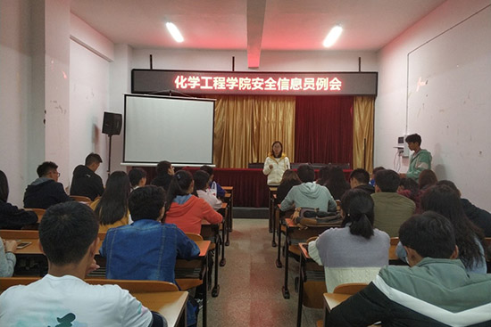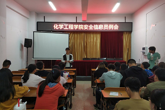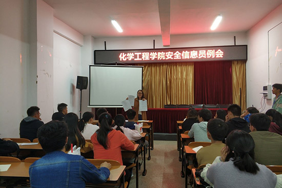 2018年10月23日晚19:00,色漫 勤助会在化工楼负一楼报告厅召开了安全信息员例会。勤助会指导老师杨欢老师、18级辅导员罗晓菲老师出席本次例会;各班安全信息员及勤助会工作人员共同参与例会。本次例会由勤助会王康富主持。