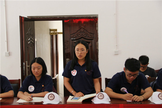首先,暑期"三下乡"社会实践服务队代表分别从“受教育","长才干","做贡献”三方面汇报了本次实践活动成果,并结合王沪宁同志在中国共产主义青年团第十八次全国代表大会所提到的习近平总书记关于“革命理想高于天、扣好人生第一粒扣子、事业靠本领成就、青春是用来奋斗的、创新是第一动力”的教导分享了在实践过程中的感悟与体会。