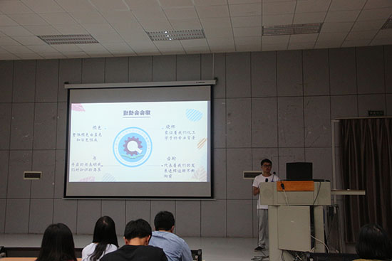 大会由勤助会会长胡轶男主持。大会伊始,主持人表达了对18级新生的期待,同时对所有到场人员表示热烈欢迎。