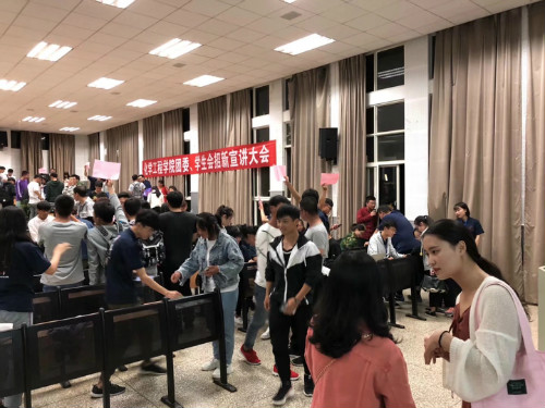 团委、学生会在中心100开展了面向18级同学的招新宣讲大会。本次大会有色漫