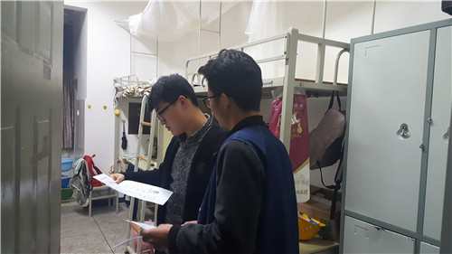 在走访过程中,学生党员服务队的成员们针对安全小常识进行了简单的介绍,帮助同学们排查一些安全隐患,同时发放了《提高安全意识,共建平安校园》及《大学生应征入伍流程及政策解读》宣传单。同学们的态度都很积极,很愿意了解和我们生活息息相关的各种安全意识。与此同时,认真检查了各层楼道安全应急灯使用情况,及时记录并上报损坏灯,期望为大家提供一个更安全的住宿环境。