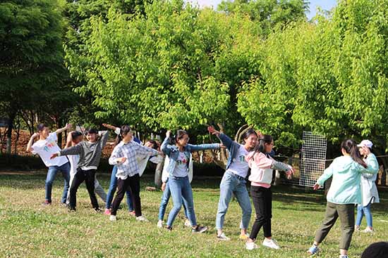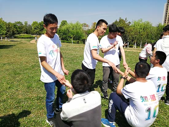 在伴随着惩罚的游戏中,活动氛围进入高潮,大家都玩得非常开心。所有游戏过后,进行的是团队大总结。采取总分总的方式,首先由指挥员引导所有成员围绕“没有完美的个人,只有完美的团队”以小组为单位总结经验、感想、收获以及付出。