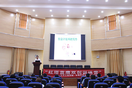 2018年5月10日下午17:00,化工院“红塔蓝鹰双创训练营”之创业计划书写作培训在化工楼报告厅100进行,本次培训主讲嘉宾是化工院学工办主任袁敬老师,双创训练营全体营员,共计九十余人参与了本次培训。