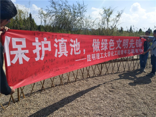 青年志愿者协会在捞鱼河湿地公园,组织了以“绿水青山就是金山银山,保护滇池,做绿色文明先锋”为主题的志愿活动。从小事做起,保护环境,一起携手共创文明环境,作绿色文明先锋。