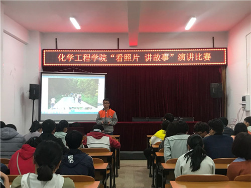 一张照片,一个故事,一段美好的记忆。为引导学生发掘身边人身边事,感悟真善美。2017年10月31日19点整,学生党员服务队组织开展的“看照片,讲故事”演讲比赛于化工楼负一楼报告厅圆满举行。本次活动由金雯老师指导,学生党员服务队的所有成员负责工作落实。积极参与本次比赛的是学院17级新生和16级的部分班级代表。