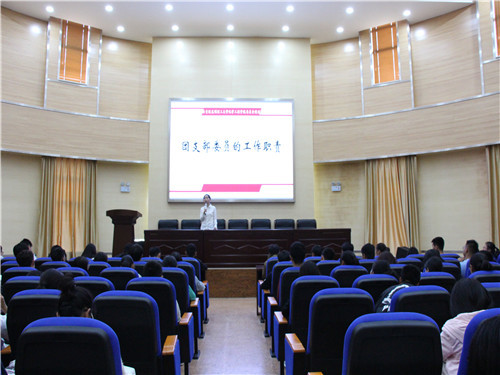 委员会团支部工作手册》,为团支书在工作中遇到的问题进行了详细的解答,也让2016级团支书和2017级团支书交流分享工作经验,并提出每一位团支书是做好从严治团、学习习总书记系列讲话等思想引领的关键,是大学时代同学们思想引领的指导者。团委金雯老师也强调了团支书的重要性,各班班委理应做好自己应做的工作,履行自己的职责。团课最后,张老师对在座的团学干部提出了自己的期望,希望各位同学做好这一年的思想引领工作,能合理有效的管理和记录各团支部的工作。