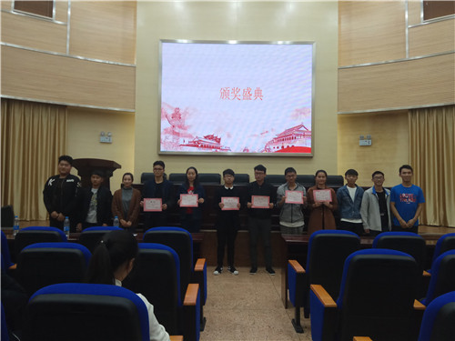 在16位团支书精彩的宣讲结束后,团委、学生会的赵茁森主席、马文凯副主席分别对此次活动进行了点评,两位主席对各团支书的努力做出了肯定,但也指出了每个支部团日活动中存在的一些的问题,希望他们以后再接再厉,做好团学思想的引领工作。最后是颁奖典礼,由学生会的主席班子们为获奖的班级颁发奖状。