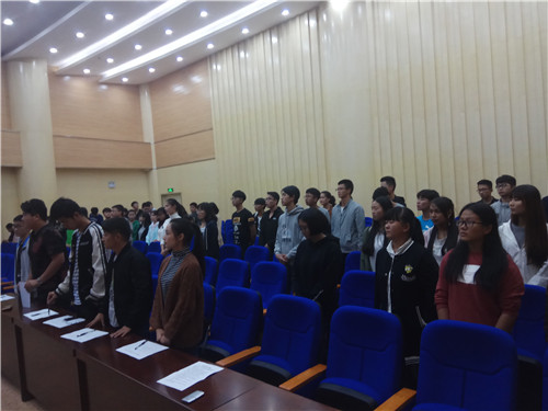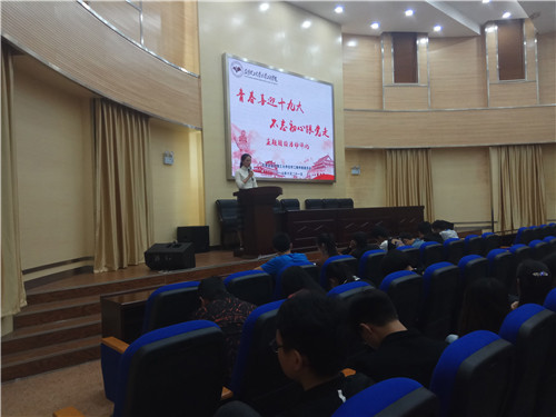 大会开始学院团委副书记左虎致辞,希望各班团支书能在此次会议中相互学习,共同发展,在今后做好各团支部团员青年的思想引领工作。随后全体人员起立,奏唱共青团团歌。紧接着是各团支书上台宣讲,16位团支书通过视频的播放和对ppt的讲解,为在座的观众介绍自己团支部的团日活动内容。每个支部的视频制作都别有用心,PPT的讲解也各具特色,精彩绝伦的演讲引起了台下的阵阵掌声。