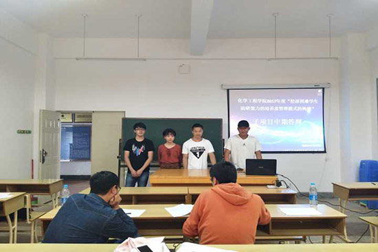 色漫 2017年度“经济困难学生助研能力的培养及管理模式的构建” 子项目中期答辩评审会于2017年9月30日下午在化工楼进行,化工系、装控系和生物质工程系相关指导老师、助研答辩小组成员共同参与。