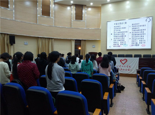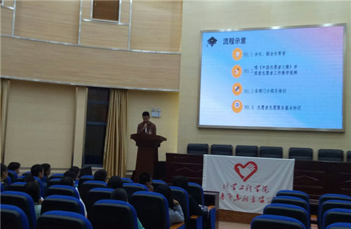 首先,会长严肃而不失风趣地阐述了青协的基本宗旨,接着副会长以生动的语言解释了志愿者的服务精神,他们表达了对2017级新成员的欢迎以及对他们有深深的期望。随后,在悠扬的伴奏中,在会长的带领下,全体起立以激动的心情一起高唱《中国青年志愿者之歌》。