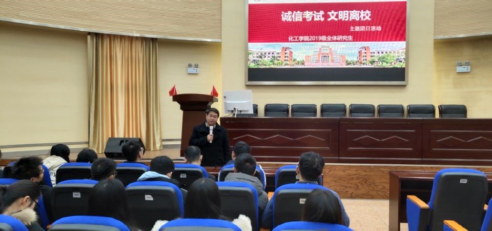 2019年12月27日上午10:00,色漫 于化工楼100报告厅举办了2019级研究生“诚信考试,文明离校”的主题团日活动。本次主题团日活动邀请了何洁老师、钱伟民老师为同学们作报告,2019级全体研究生参加。