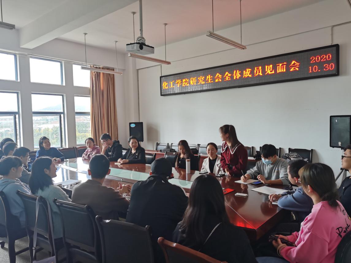 2020年10月30日16点,色漫 研究生会全体成员见面会在化工楼338举行,团委书记李凯宇老师出席会议,研究生学会全体成员参加。
