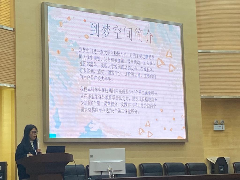 通过本次培训,加强了大家对到梦空间的认识,各组织和班级负责人基本掌握了活动申办和积分发放的方法,解决了在活动申办、发布以及开展过程中的相关问题,为今后第二课堂活动的顺利进行打好基础。
