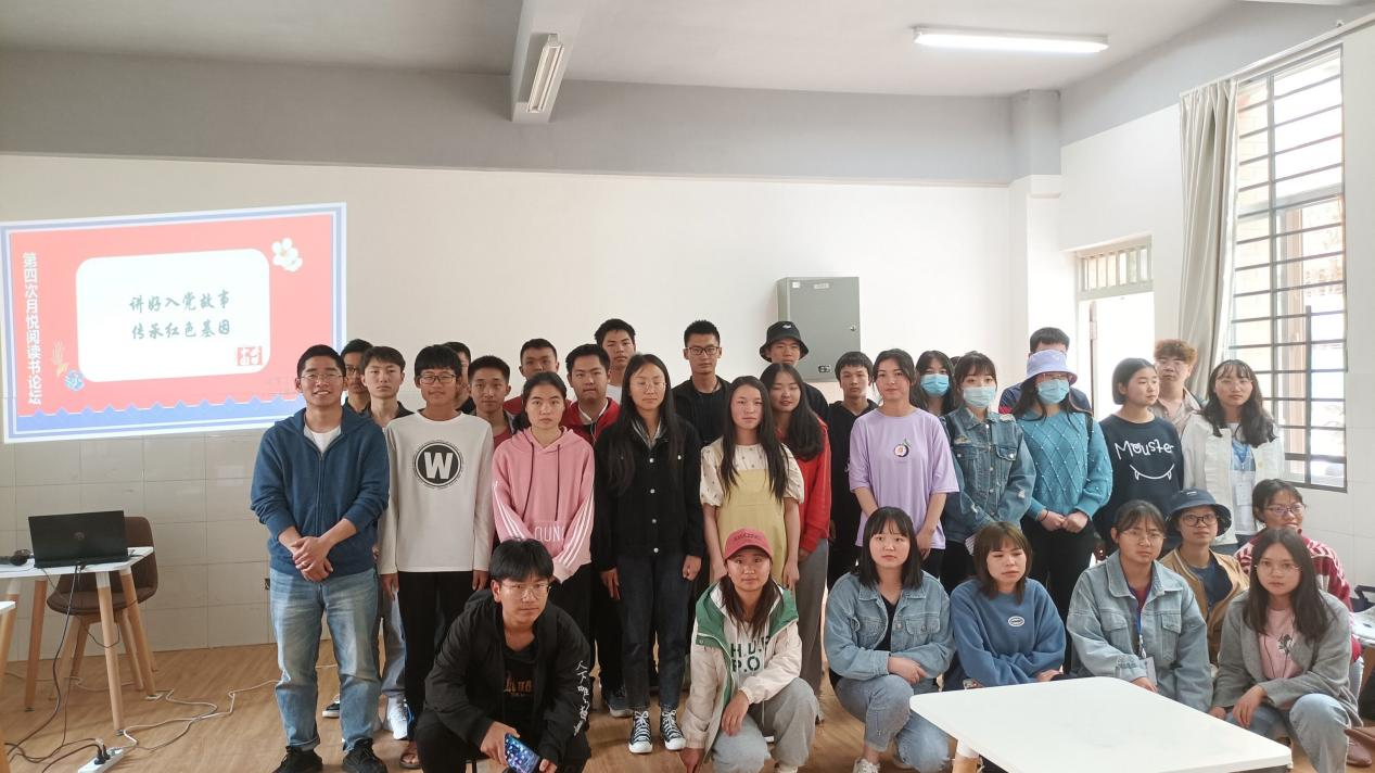 第四次“月悦阅”读书论坛在恬园15栋举行,本次读书论坛的主题为“讲好入党故事,传承红色基因”,活动由勤助会刘秋艳主持,勤助会指导老师田世垚及来自各学院的读书爱好者参加了本次活动。