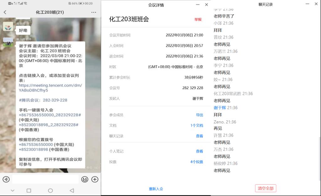 2022年3月8日,化工203班在腾讯会议上召开了“遵规守纪,崇德尚学”线上主题班会。本次会议通过线上投票的方式选取了化工203班的班委。接着,班主任谢于辉老师带领大家一起学习了学校近日印发的《色漫