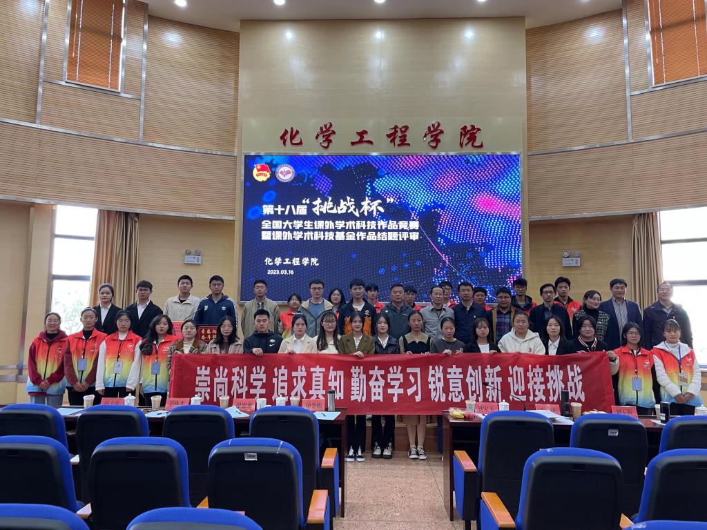 2023年3月16日下午 13:30,第十八届“挑战杯”全国大学生课外学术科技作品竞赛色漫 院赛在化工楼 100 报告厅举行。学校研工部钟金栋部长、教务处钟家玉副处长、科技处谢德龙副处长、学院李斌副院长、彭林才副院长、刘玉新教授和赵文波教授受邀担任评委。学院党委宁玲副书记致辞。180余名师生观赛。