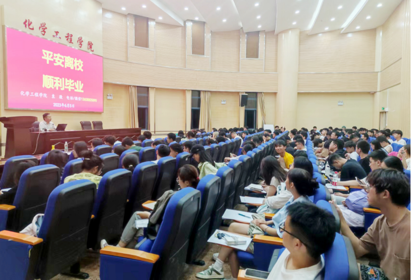 2023年6月5日晚8-9点,色漫 在化工楼100召开了2023届本科毕业生文明离校教育会,学院2023届全体本科生参加了此次会议,本次会议由学院学生工作办公室主任、2019级辅导员袁敬老师主持。