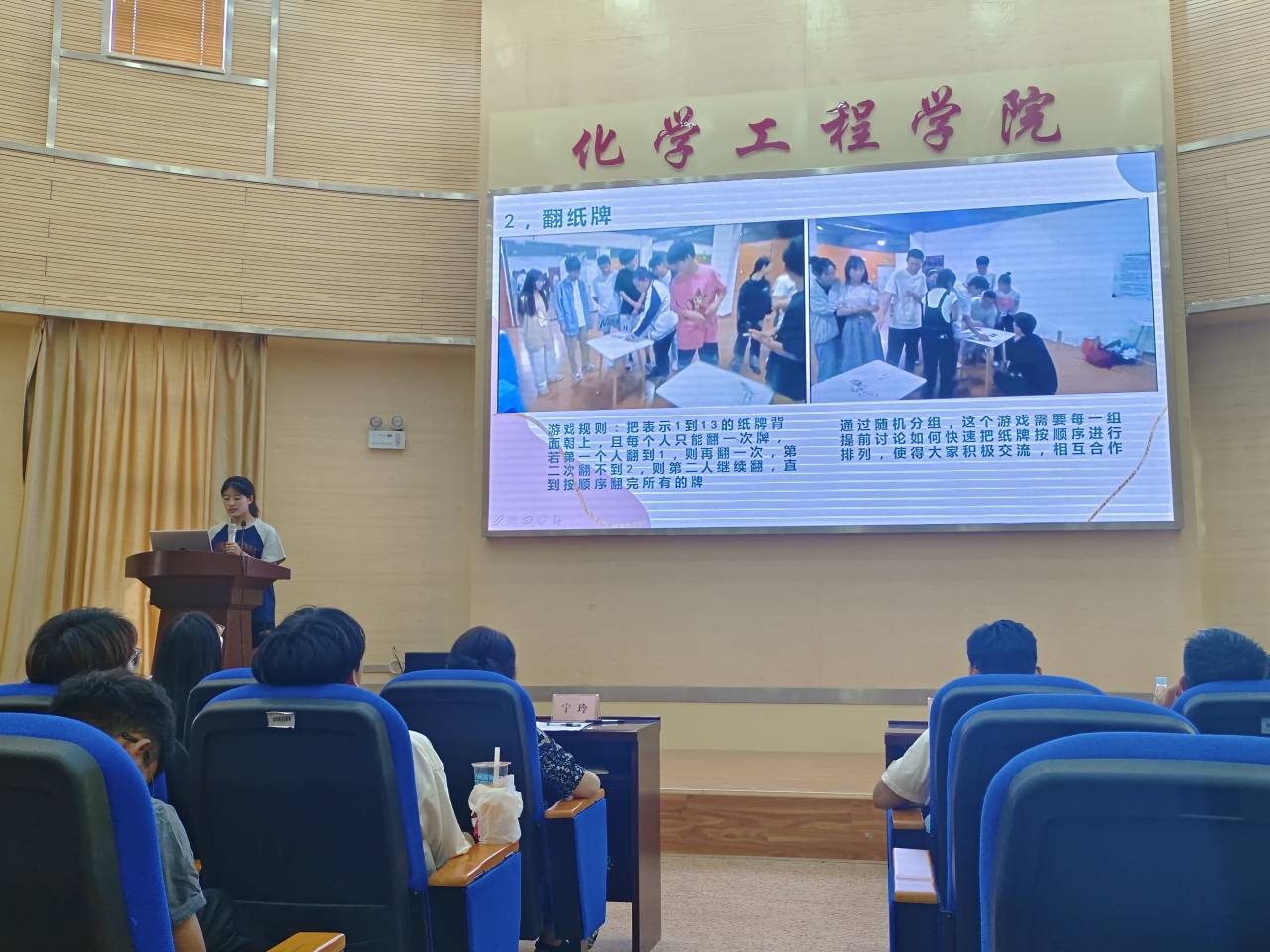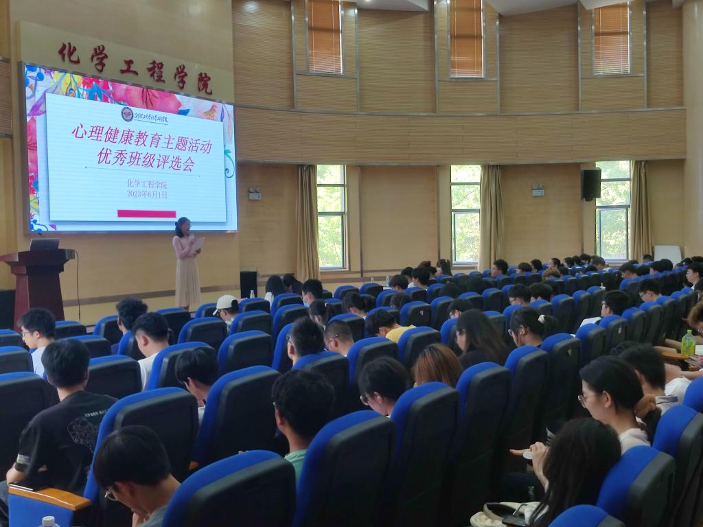 于化工楼100报告厅举办心理健康教育主题活动优秀班级评选会,学院党委副书记宁玲、学工办辅导员田世垚、辅导员朱芝、本次心理健康活动指导老师谢丽芬及学生代表,共计150余人参加活动,活动由周绍敏同学主持,我院8个班级报名参加了本次评选会。
