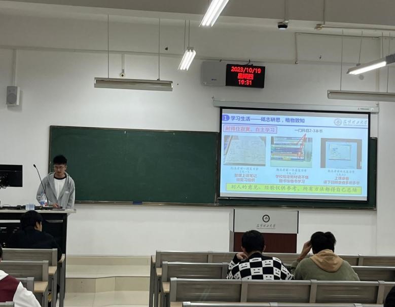 2023年10月19日,2020级曾祥同学围绕学习、科研、学科竞赛、社会实践等方面与同学们开展交流,分享了自己的经验和心得,并鼓励同学们勇于挑战自己,不断提升自我。