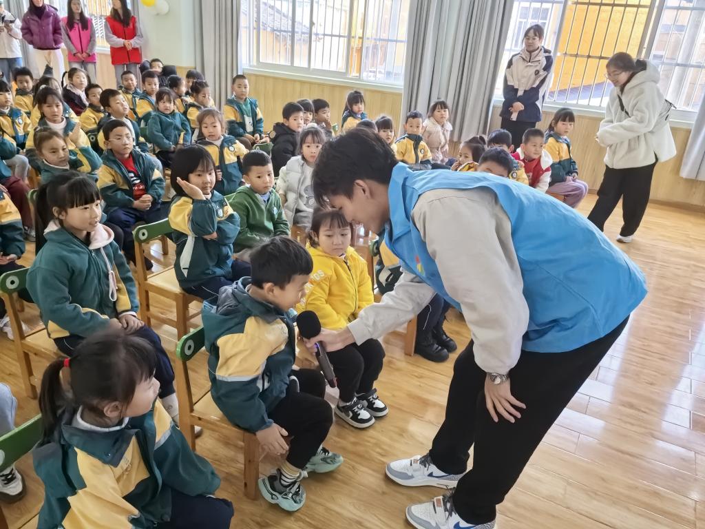 活动现场,昆工安道护梦队的志愿者们身着统一队服,为孩子们带来了一次充满智慧与温情的教育体验。他们精心准备了PPT,结合图像和文字,详细阐释了安全理念的重要性。通过生动形象的视频讲解和模拟情景,志愿者们向小朋友们展示了在不同情境下如何识别潜在的危险,并采取正确的行动来保护自己,这场宣讲活动也在守护平安的道路上,为孩子们点亮了一盏小小的知识明灯。
