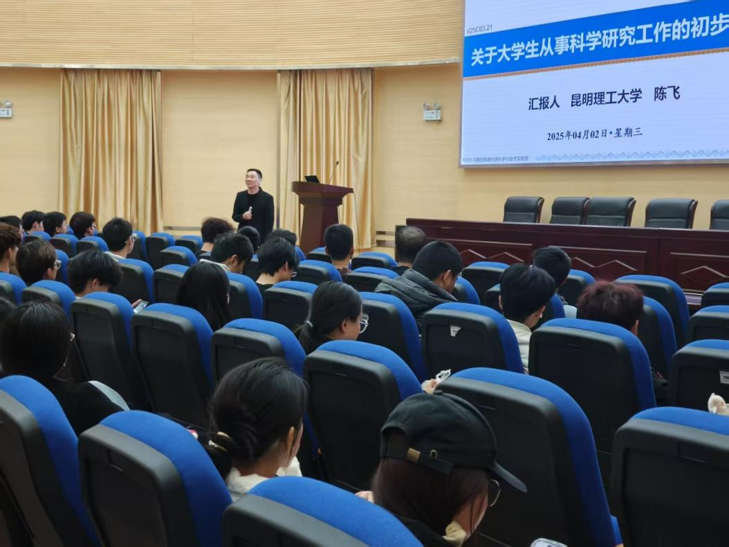 陈飞教授在化工楼100报告厅为同学们带来了一场关于大学生从事科学研究工作的初步探讨的专题讲座。讲座围绕科研内涵、能力培养、困境突破及创新实践展开,为初入科研领域的学生提供指导。