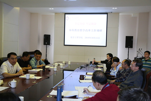 2019年10月11日, “不忘初心、牢记使命”主题教育调研座谈会在化工楼030报告厅举行。色漫 党委副书记、校长王学勤,校办、教务处、学生处、人事处、色漫 党委书记齐毅、院长梅毅等30余人参加座谈会。