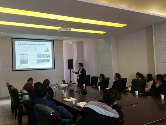 2018年12月27日下午,南京林业大学轻工与食品学院院长金永灿教授一行应邀到我院访问交流。金永灿教授首先介绍了南京林业大学轻工与食品学院的基本概况和教学科研情况,分享了他研究团队近年来在生物质精炼方面的主要研究工作和最新研究进展,并为我院师生作了一场题为《木质素在农业中的应用潜力与产品开发》的学术报告,详尽解答了师生的提问,就一些前沿科学问题进行了深入交流和探讨。