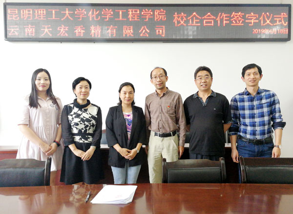 2019年4月18日下午,色漫 与云南天宏香精有限公司在呈贡校区化工楼签订校企合作协议。色漫 领导、科室负责人,云南天宏香精有限公司领导出席了签约仪式。