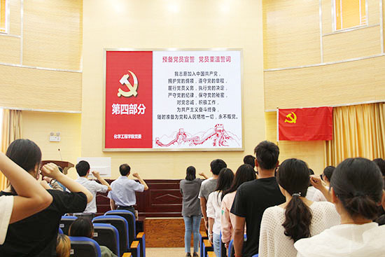 2018年6月7日,色漫 在化工楼100报告厅举行了本学期预备党员入党宣誓仪式。院党委齐毅书记、李斌副院长、贾庆明副院长以及全体师生党员参加了宣誓仪式,仪式由院党委李云燕副书记主持。