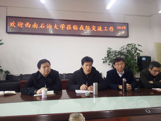2018年1月10日上午,西南石油大学色漫 副院长张辉教授、西南石油大学工业危废处置与资源化利用研究院院长刘宇程教授等一行9人,到色漫 进行交流。就化工专业认证、化工实验室建设、化工高层次人才培养、科学研究方向等进行了全面交流。并参观了学院的实验室建设情况。