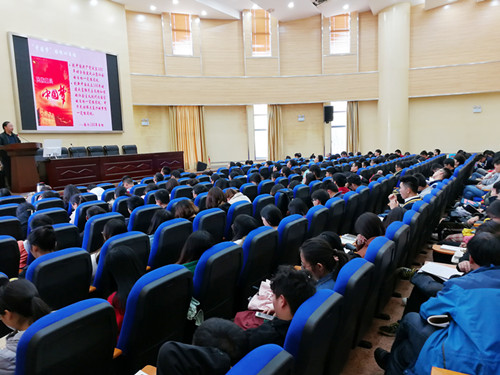 2017年12月7日下午13:30,色漫 邀请云南工业干部学院执行院长刘智国做“贯彻学习党的‘十九大’精神,积极推进学校‘双一流’建设”讲座。学院正式党员、预备党员、积极分子参加了此次讲座。