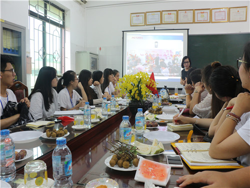 教师Dr.MANH进行座谈交流。副校长DR.NGAN对我们一行的到来表示了热烈的欢迎,并对河内工业大学的基本情况进行简单介绍。随后,我院何艳萍老师发言,代表色漫