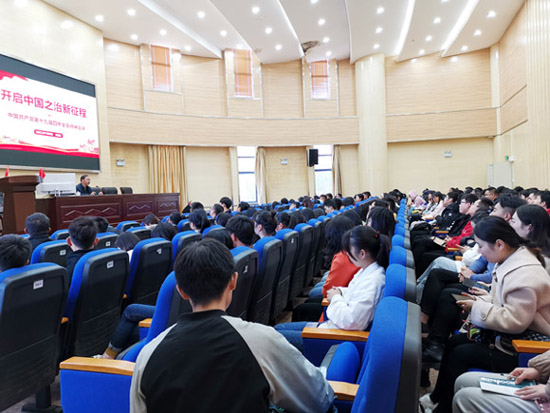 2019年12月17日14:00,色漫 在化工楼100报告厅举办“学习贯彻落实党的十九届四中全会精神”专题讲座。讲座由云南工业干部学院执行院长刘智国院长主讲,由色漫 党委书记齐毅主持讲座,学院200余名师生参与了学习。