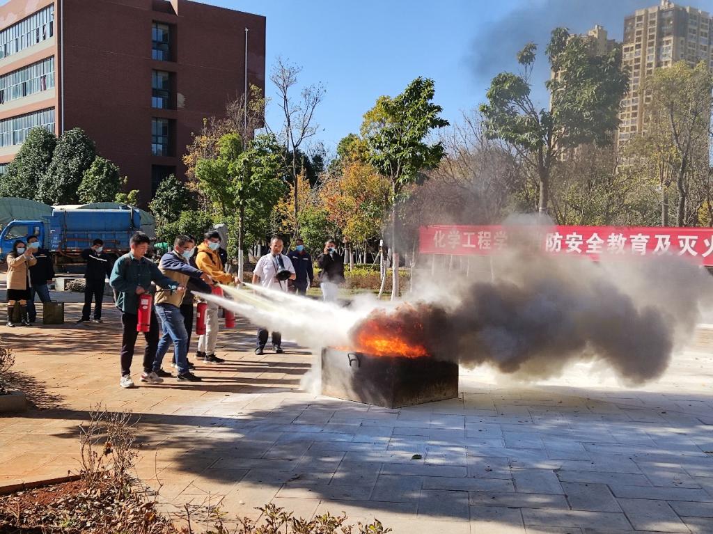 活动分为消防安全知识宣传和灭火实训演练两个部分。消防安全知识培训在化工楼100报告厅进行。国有资产与实验室管理处刘迎春副处长对活动开展以及实验室安全管理给予了悉心指导。昆明市消安应急服务中心高鑫教员围绕消防安全常识、火灾事故预防与应急处置,并结合近年来发生的典型安全案例进行了专题讲解,同时对常用消防器材的正确使用进行了现场演示。